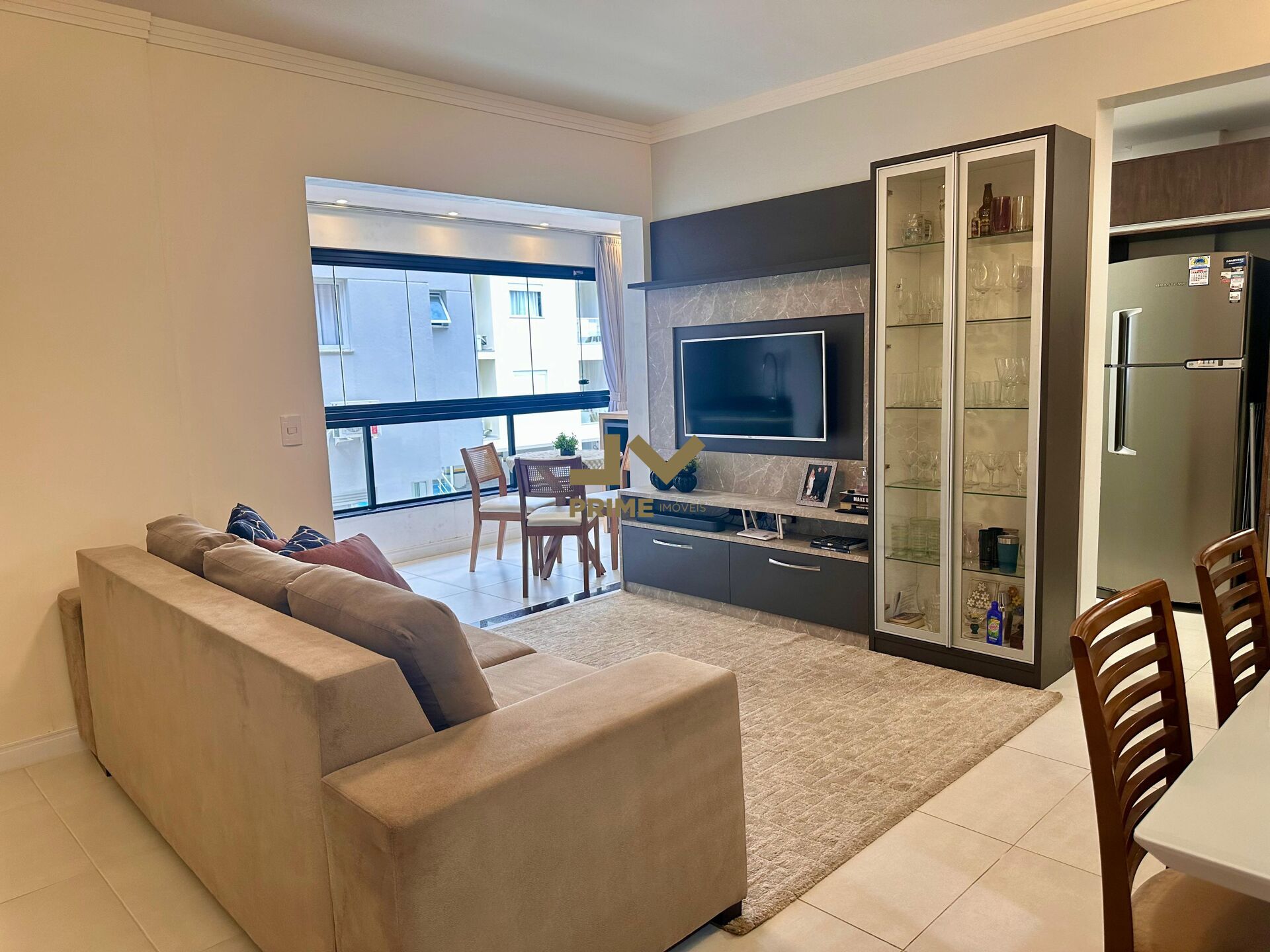 Apartamento com 2 suites, mobiliado e contém 82 m² e sacada com churrasqueira.